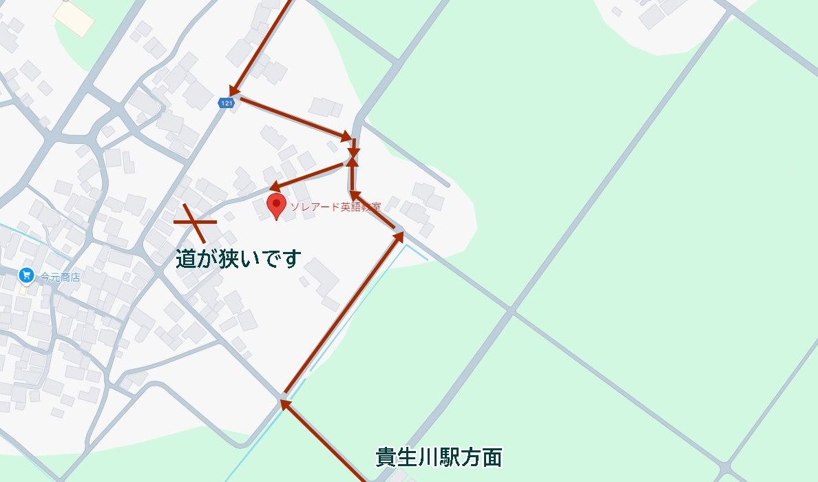 西側から来ると道が狭いので、東側からのルートでお越しください