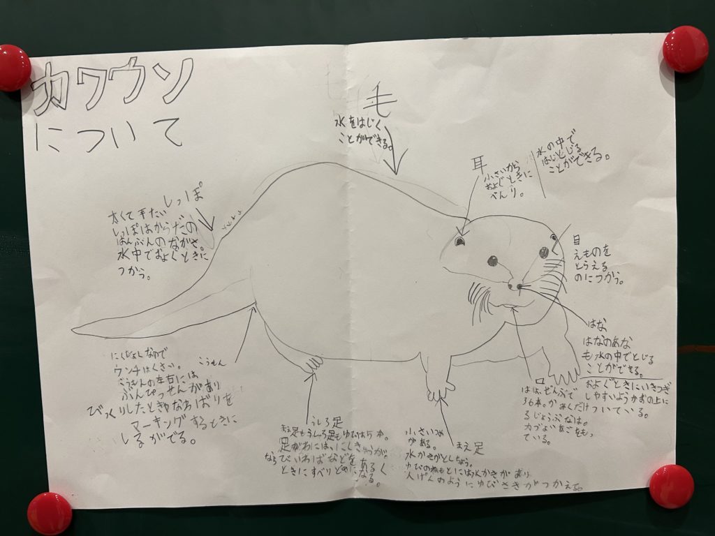 カワウソが大好きな生徒さんは、カワウソについてたくさん調べてきてくれました。
