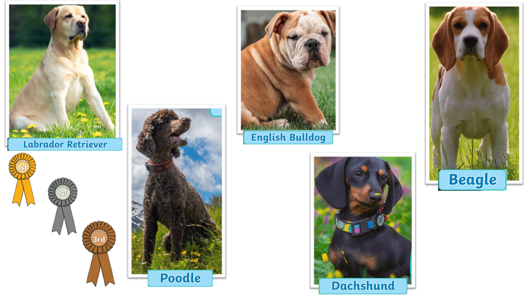 レッスンでは写真下のいろんな犬を子どもたちに見せて、みんなが一番好きな犬をそれぞれ
